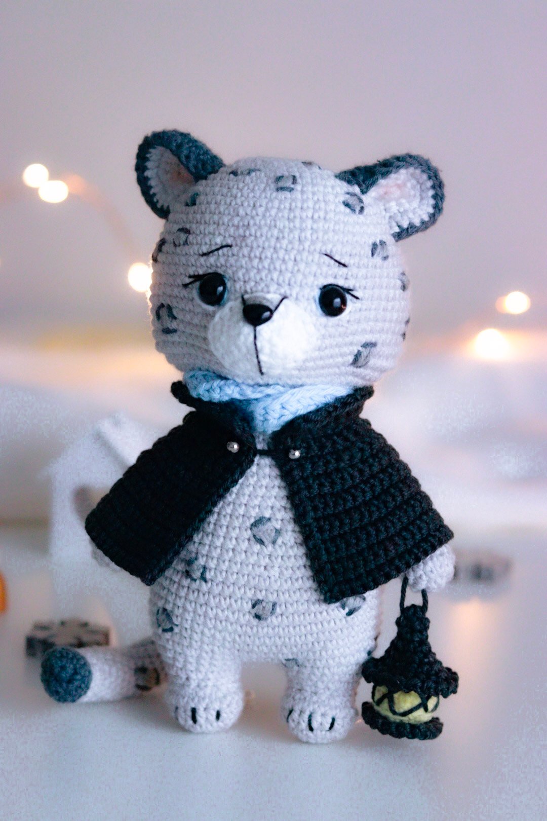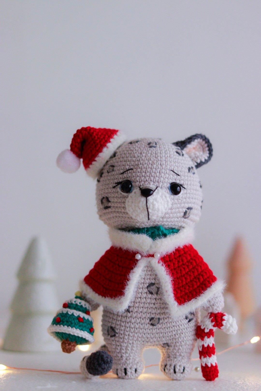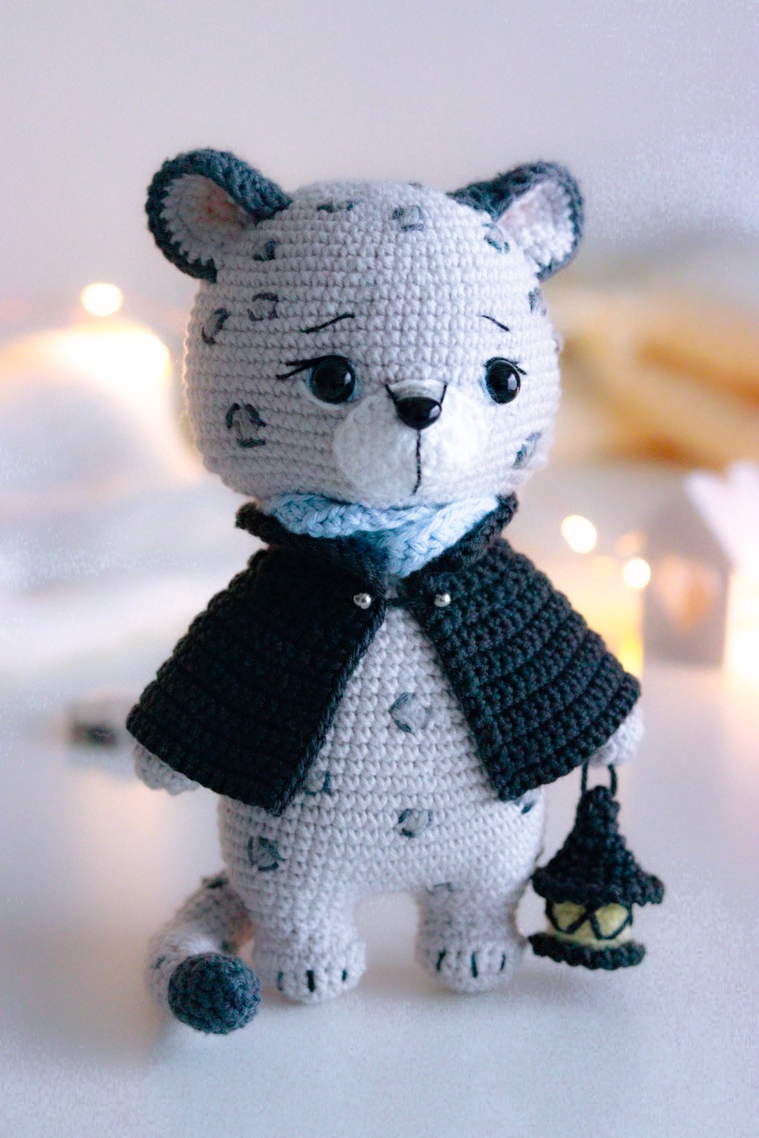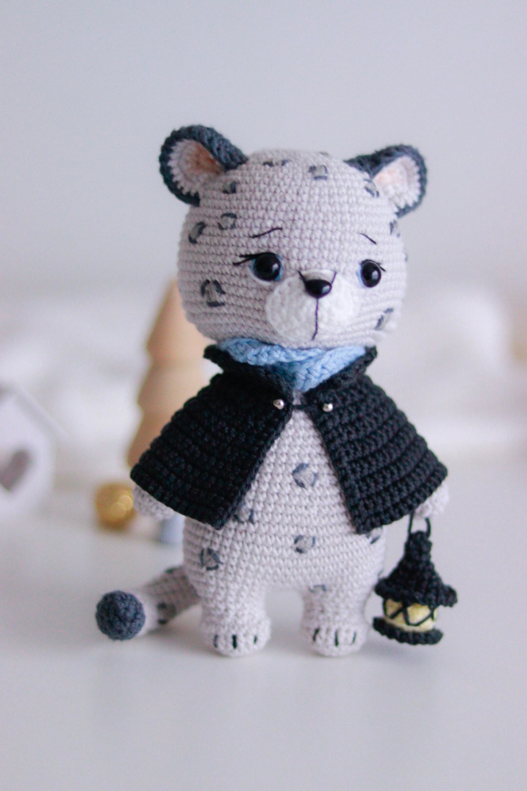 Découvrez le kit pour réaliser au crochet, Boréal, l’adorable léopard des neiges avec sa tenue d’hivers.