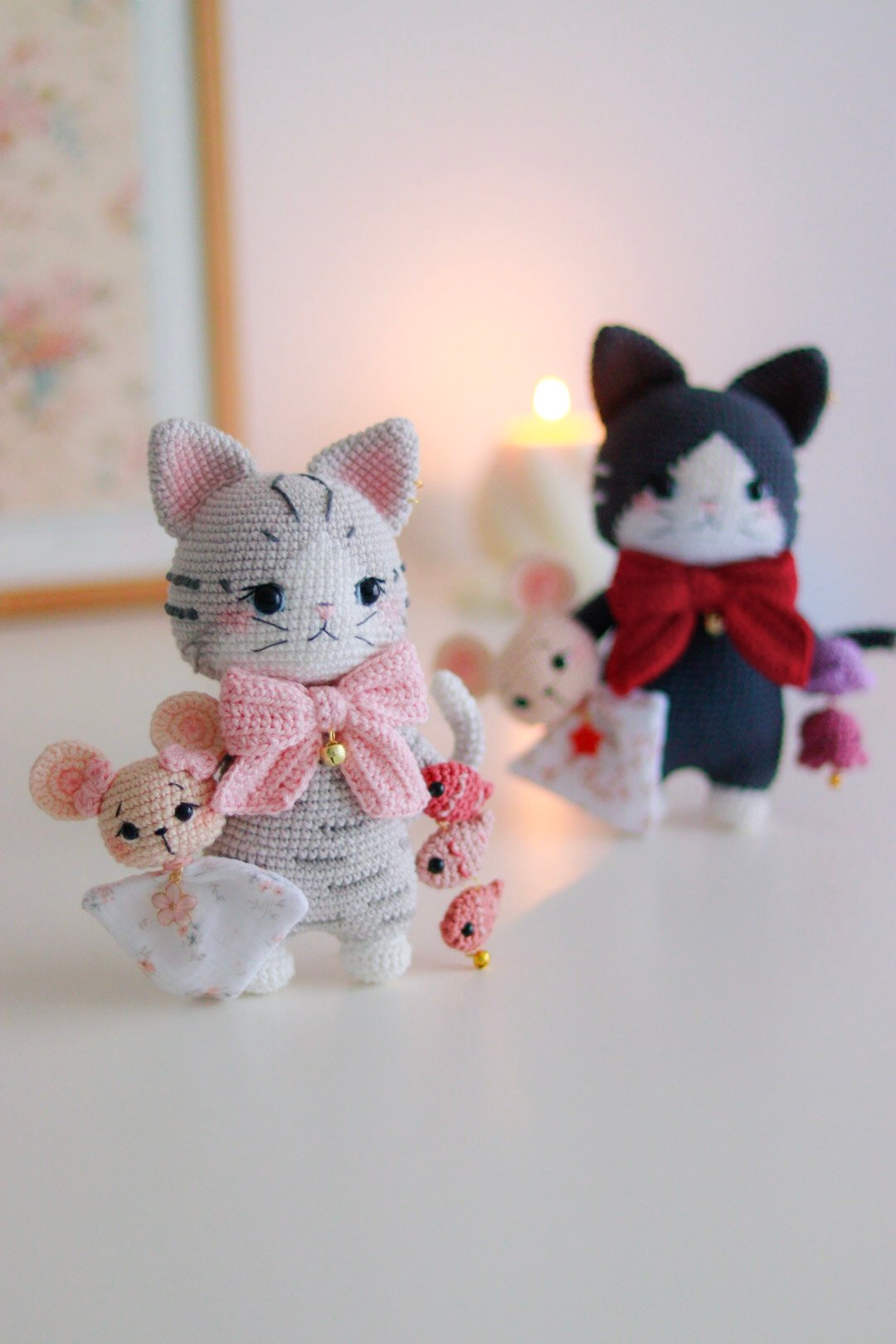 Des instructions claires et détaillées pas à pas pour faire le chat (les deux couleurs avec leur accessoires)
